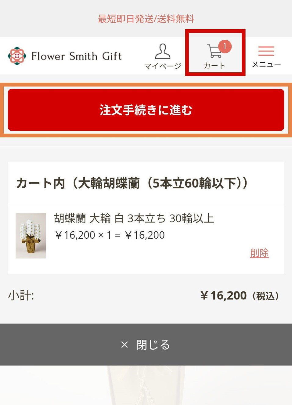 最後にフラワースミスギフトで胡蝶蘭を購入する手順を画像付きで解説します。