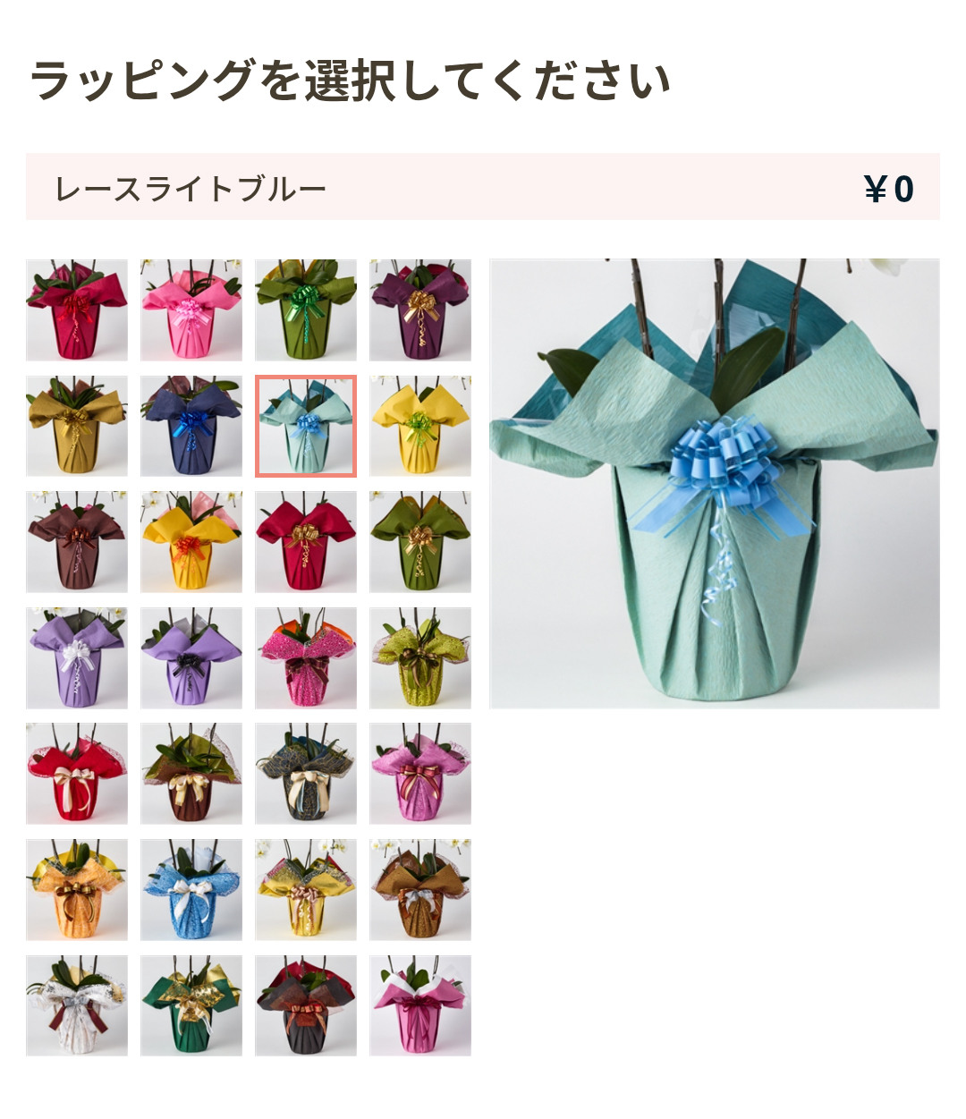 お好きなカラーの写真をクリックしてラッピングを選ぶ。