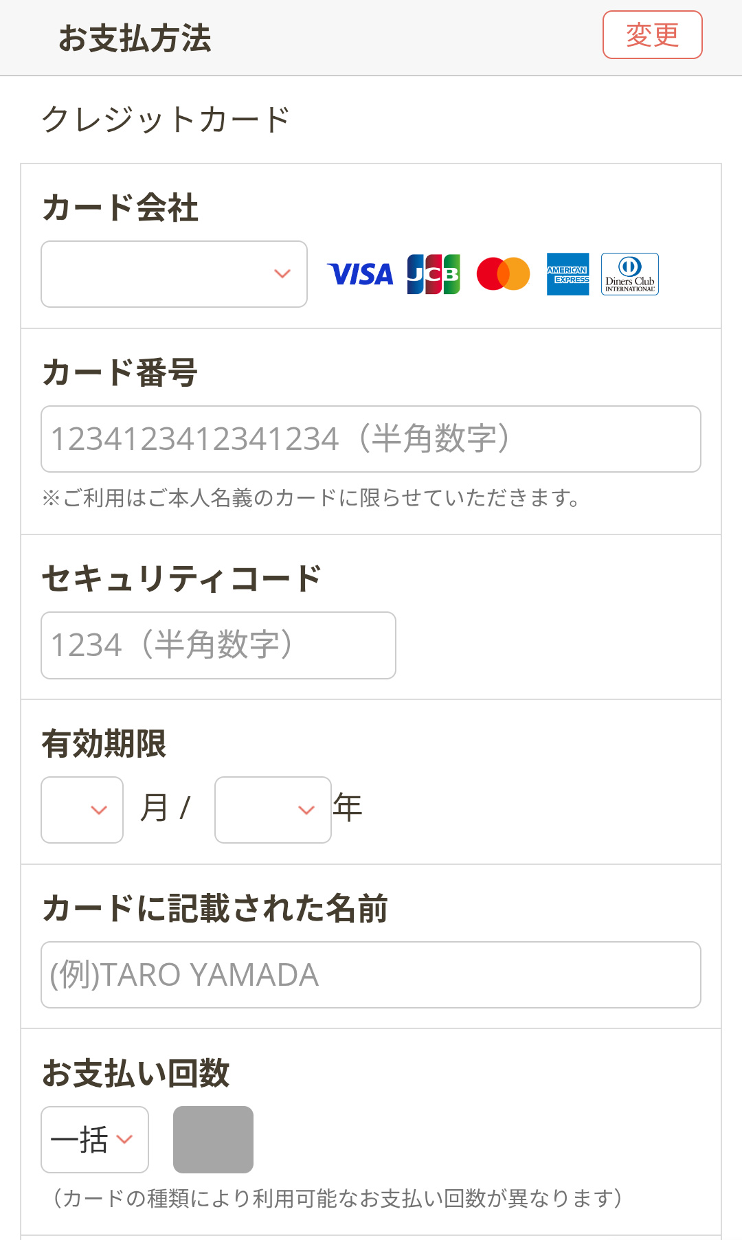 先述のとおり、フラワースミスギフトの支払い方法はクレジットカードとAmazon Payの2種類のみになります。